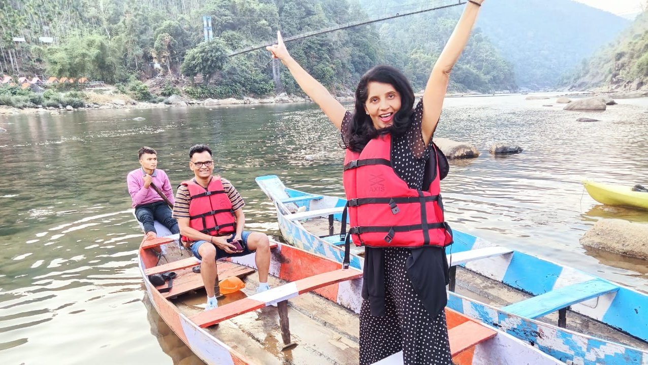 Natural Holidays - Guest from Maharashtra Enjoying Boat Ride in Dawki, Top Guwahati Tour Operator for North East India, Assam Meghalaya Arunachal Pradesh Tour Operator, Book Assam Meghalaya Arunachal Pradesh Tour Packages from Natural Holidays